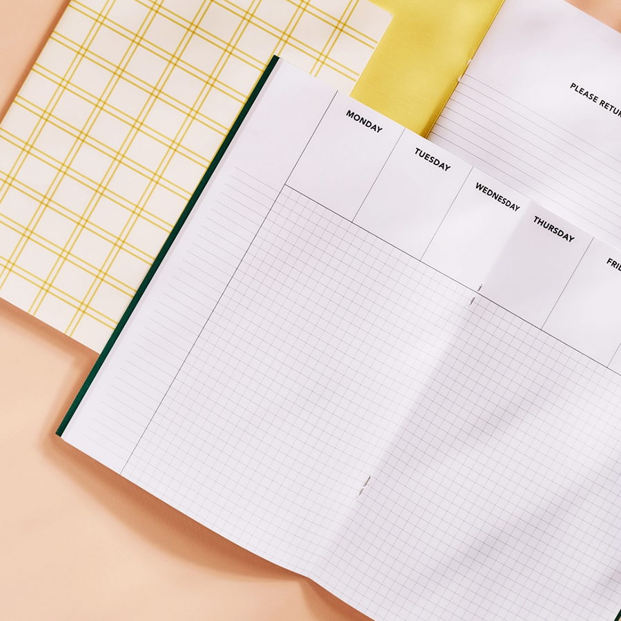 Soft and structured, the Golden Gingham weekly planner notebook features a warm yellow check pattern on a neutral background. It’s equal parts classic and cheerful—perfect for organizing your week without sacrificing style.