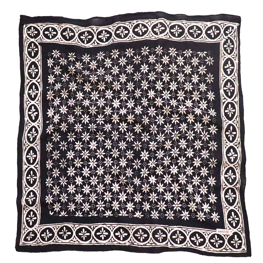 This lovely black and cream floral patterned scarf is made from white cotton fabric that is then hand-stamped and hand-dyed using 700 years old batik wax and dye technique. The batik fabric is also then sun baked. You should expect some variation of the color.