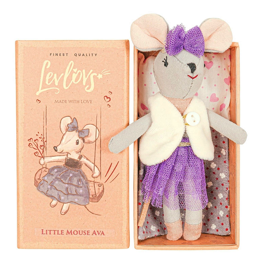 Meet Little Mouse Ava! A soft and huggable mouse crafted from natural linen fabric, with a gentle texture that's perfect for cuddling. Wearing a little purple head bow and matching tutu skirt adds the cutest personality to her outfit.