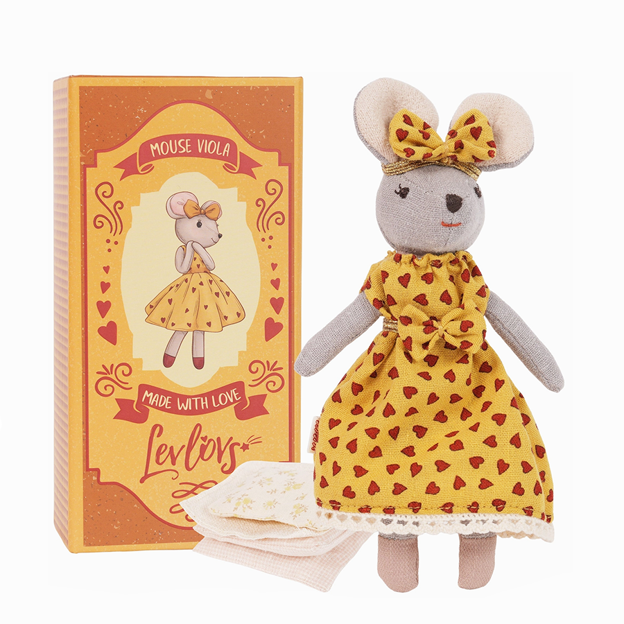Say hello to Mouse Viola, a charming little mouse doll made with love and linen. Dressed in a sweet dress sprinkled with dainty hearts, she’s ready to steal hearts wherever she goes. Her delicate bow perched atop her head adds the perfect finishing touch to her playful personality.