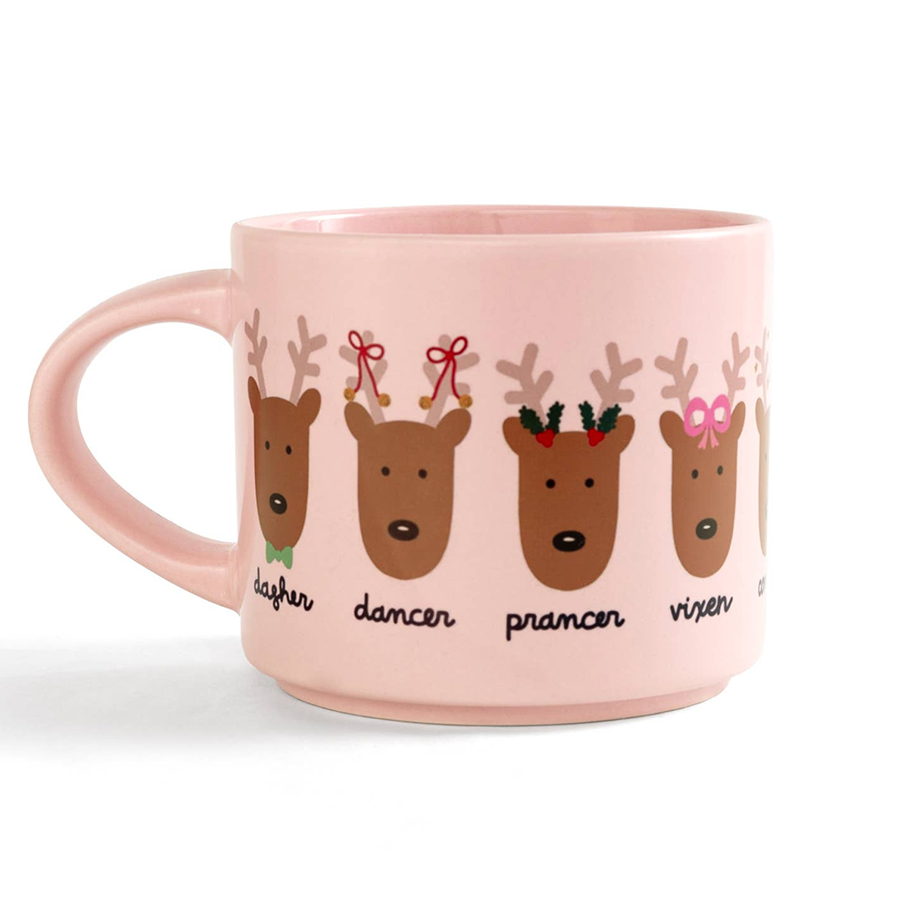 Sip your holiday coffee in festive, reindeer-approved style with this Santa’s Reindeer Christmas Mug! Featuring all nine of Santa’s reindeer, from Dasher to Rudolph, each with their own adorable holiday details like candy canes, bows, and twinkling lights.