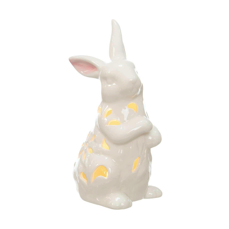 Made from durable stoneware, this LED bunny figurine is designed with floral cut-outs, allowing the light to gently shine through and illuminate spring-themed displays or tabletops.
