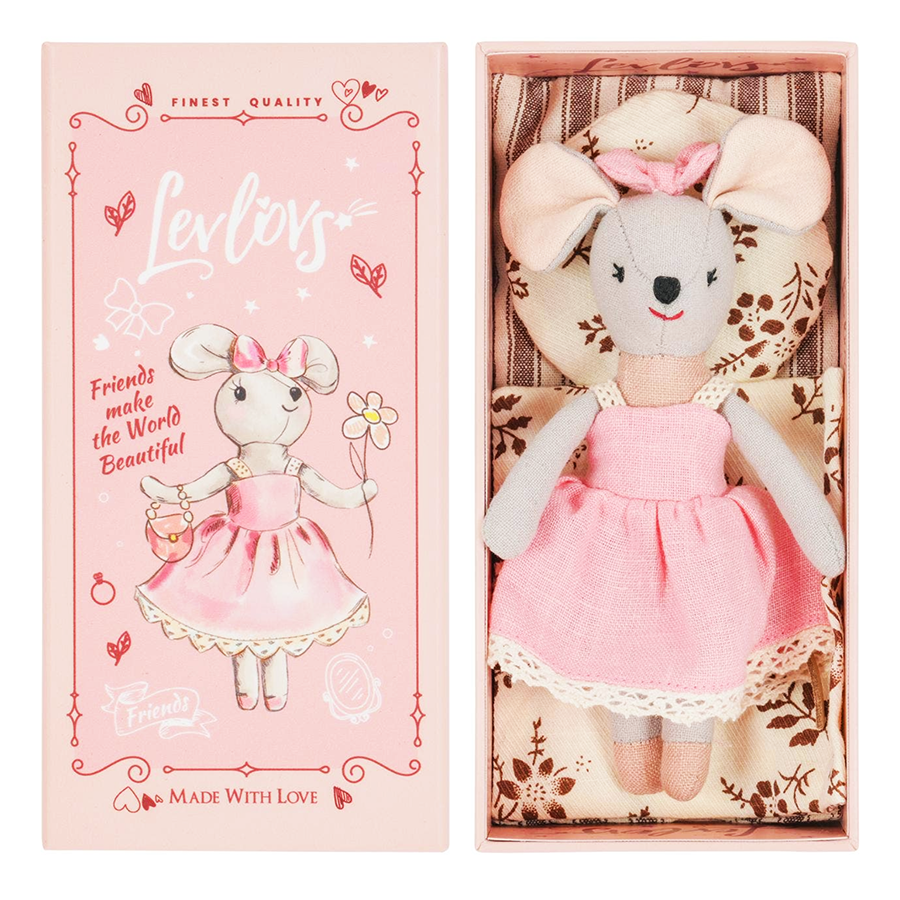 Mouse Lili is the cutest thing ever. She is wearing a simple yet charming pink dress, the kind that feels like it belongs in a fairytale—a soft, cotton fabric with just the right amount of flow, perfect for twirling. And yes, a bow on her head just adds that extra bit of sweetness. Little Mouse Lili is ready to greet you with a smile.