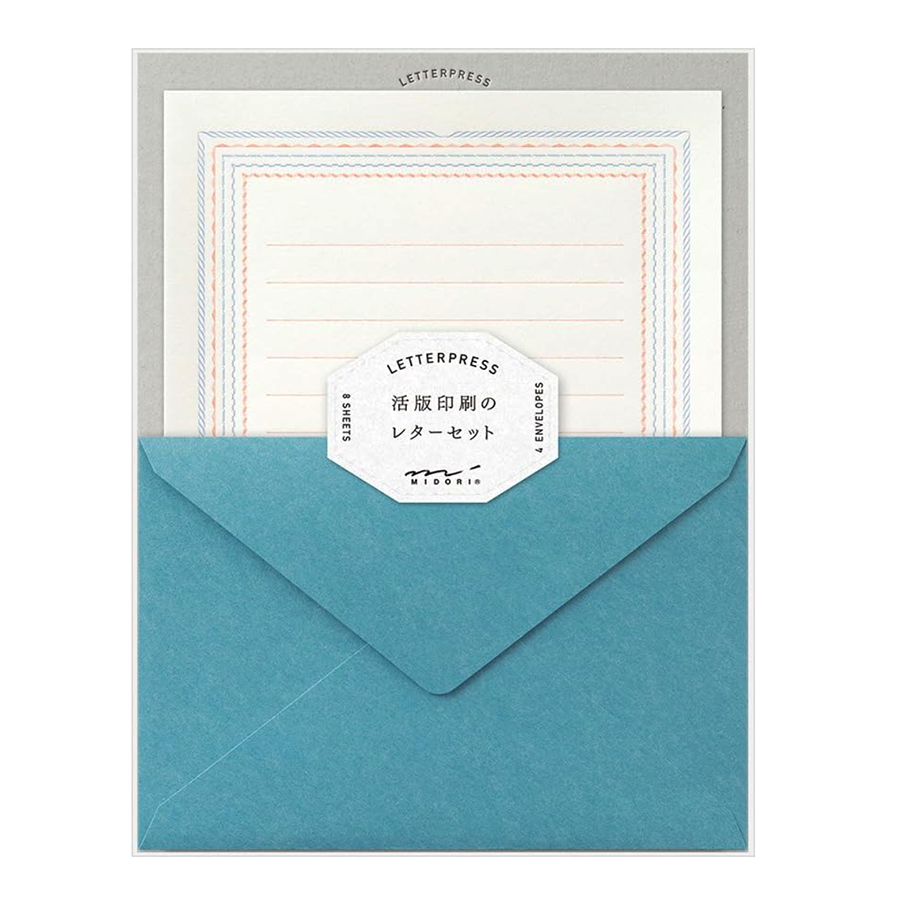 This lovely blue frame patterned letterpress writing set is a lovely way to send a sweet letter to family and friends.