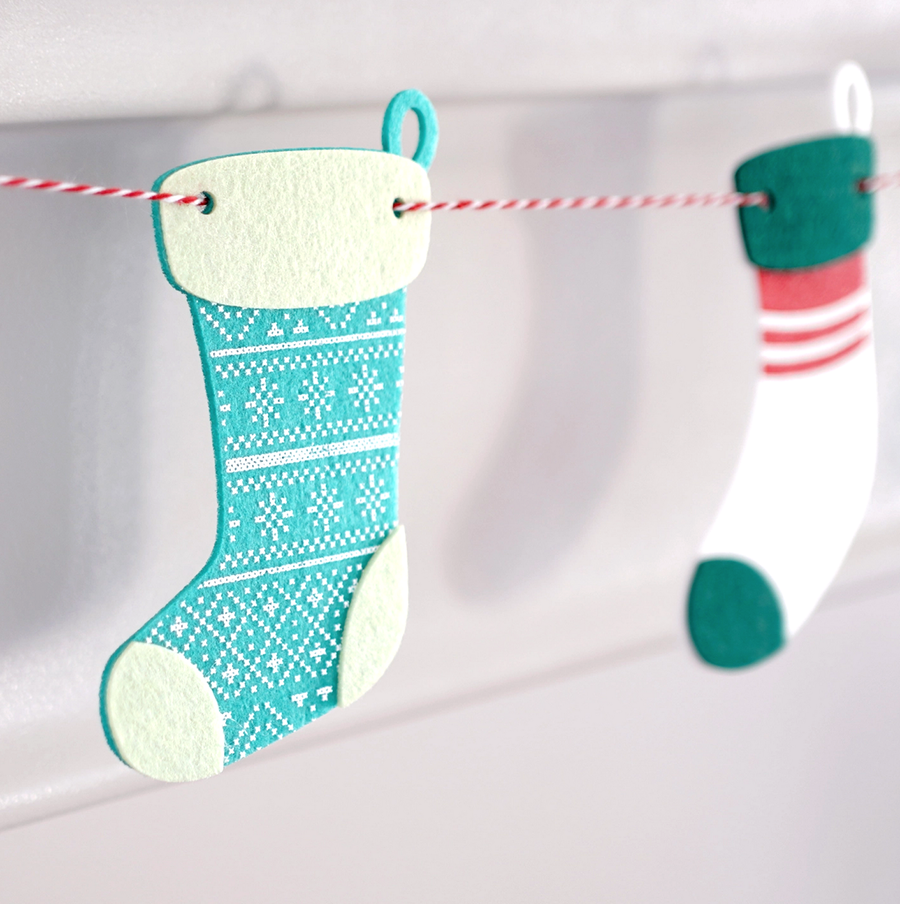This festive stocking garland is great for the whole winter season. Each garland comes with 10 beautifully felted stockings with interesting print detail.