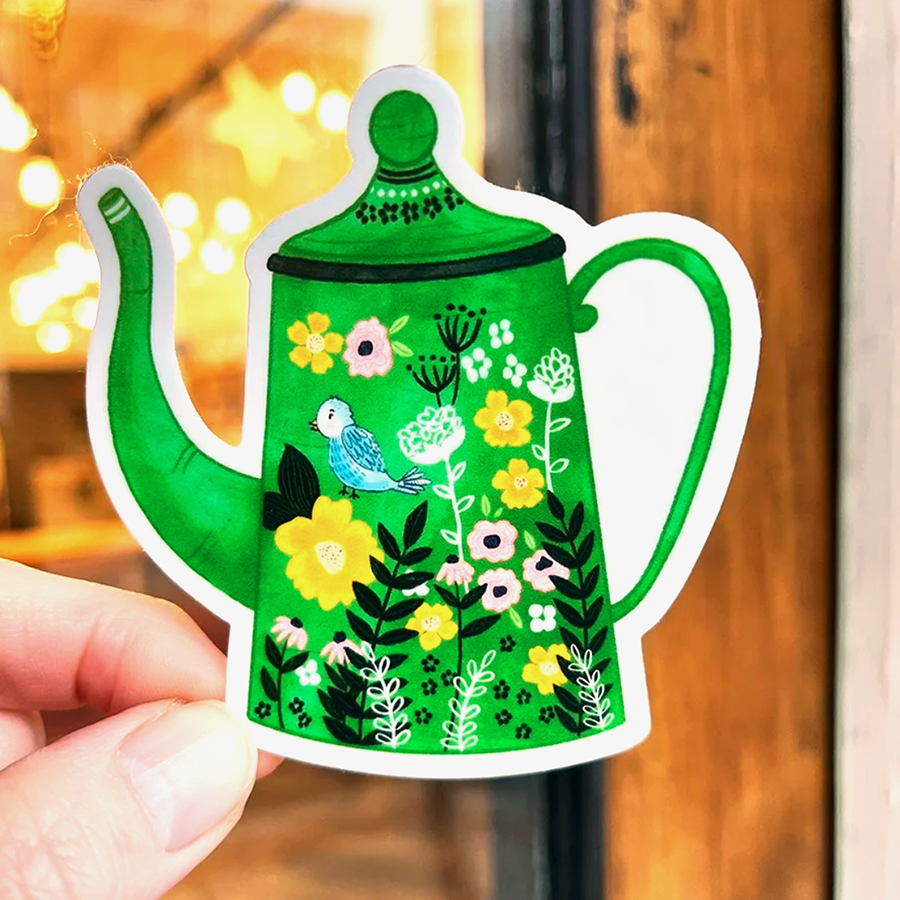 This cute green floral teapot die-cut sticker is perfect for any laptop, notebook, stationery and more! Best of all? They are fade resistant for 3 - 5 years and water resistant, too.